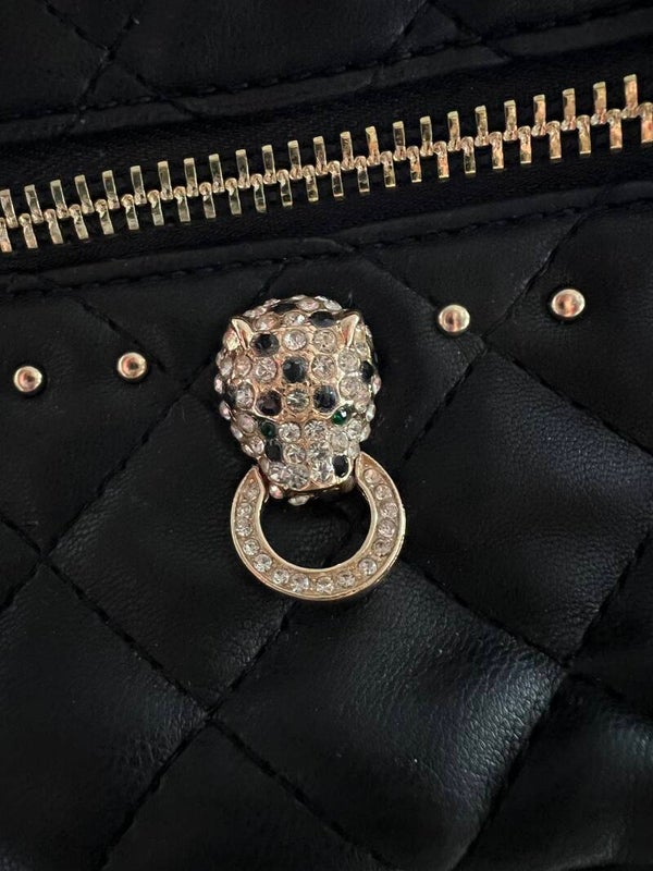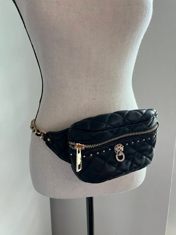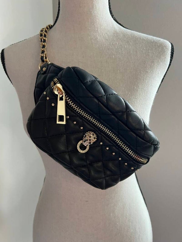 Bauchtasche in Schwarz mit goldenen Details & kleiner Leopardenschnalle