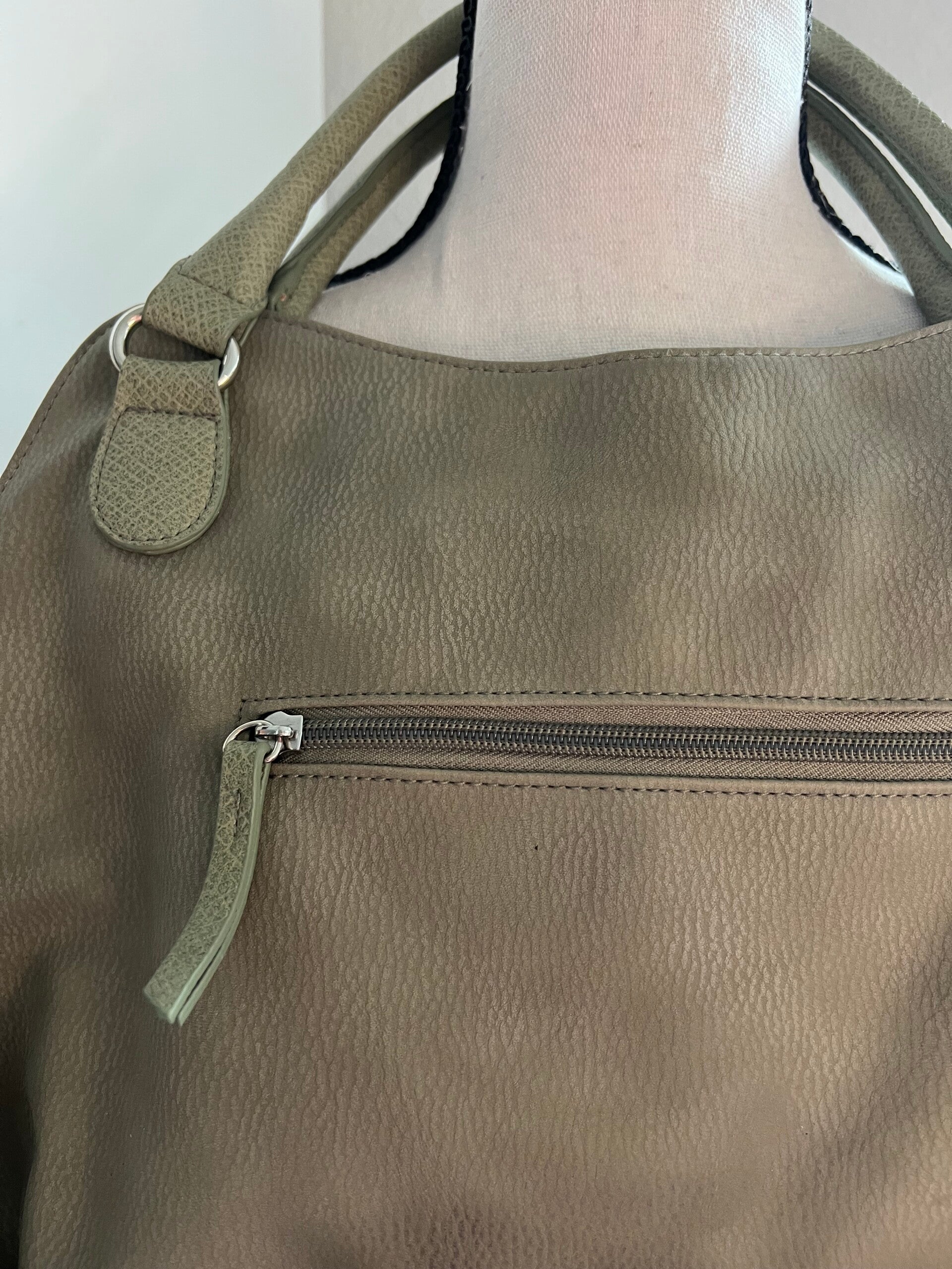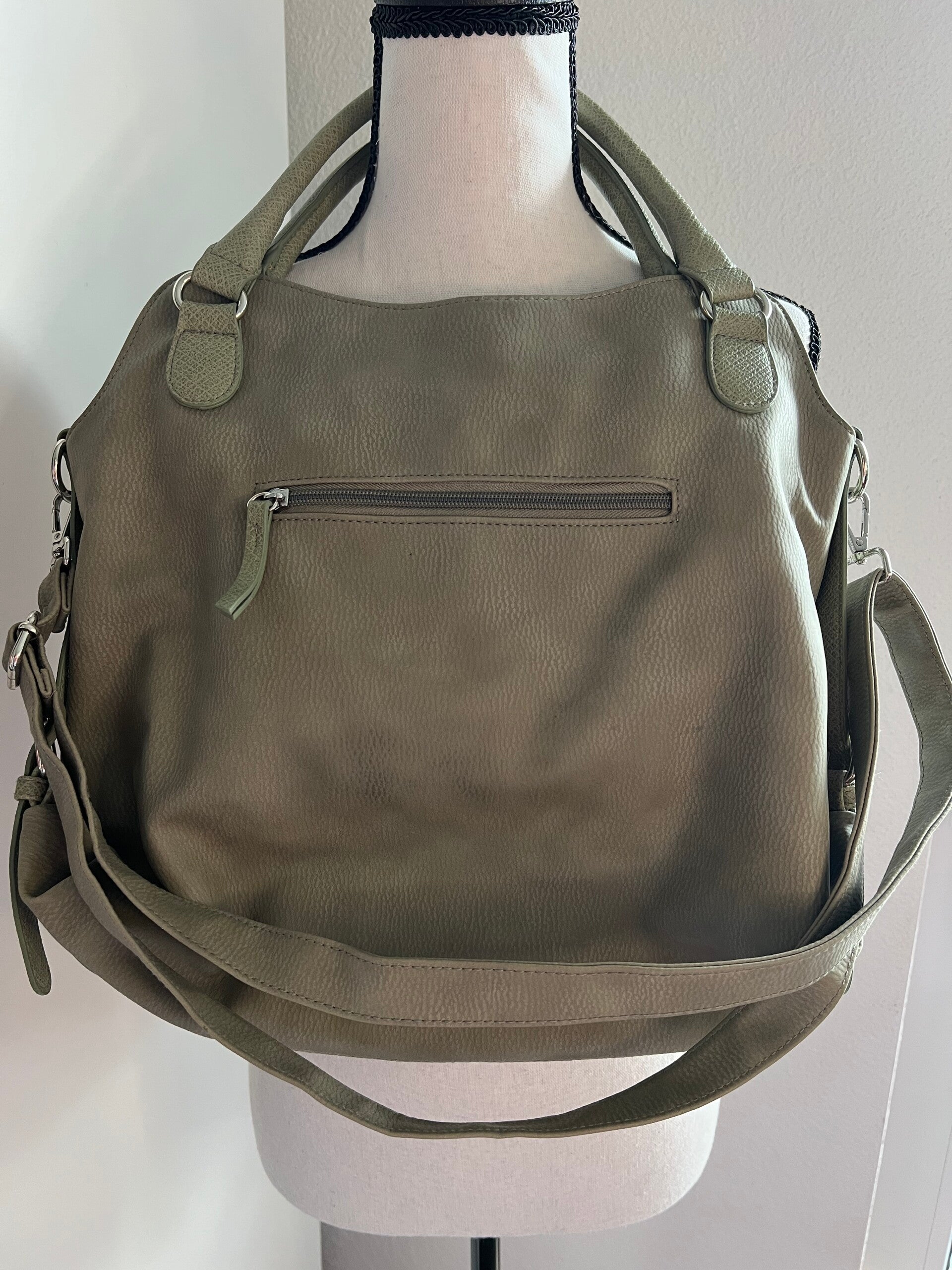 Diese vielseitige grüne Tasche überzeugt durch ihren grosszügigen Stauraum und das praktische Umhänge-Design – perfekt für Alltag, Stadtbummel oder Ausflüge.