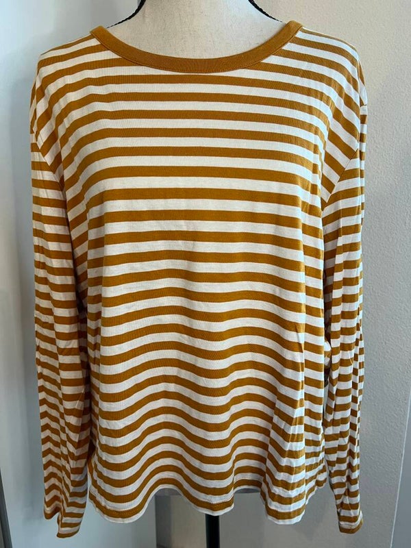 Gestreifter Pullover – Senfgelb & Weiss - Größe L