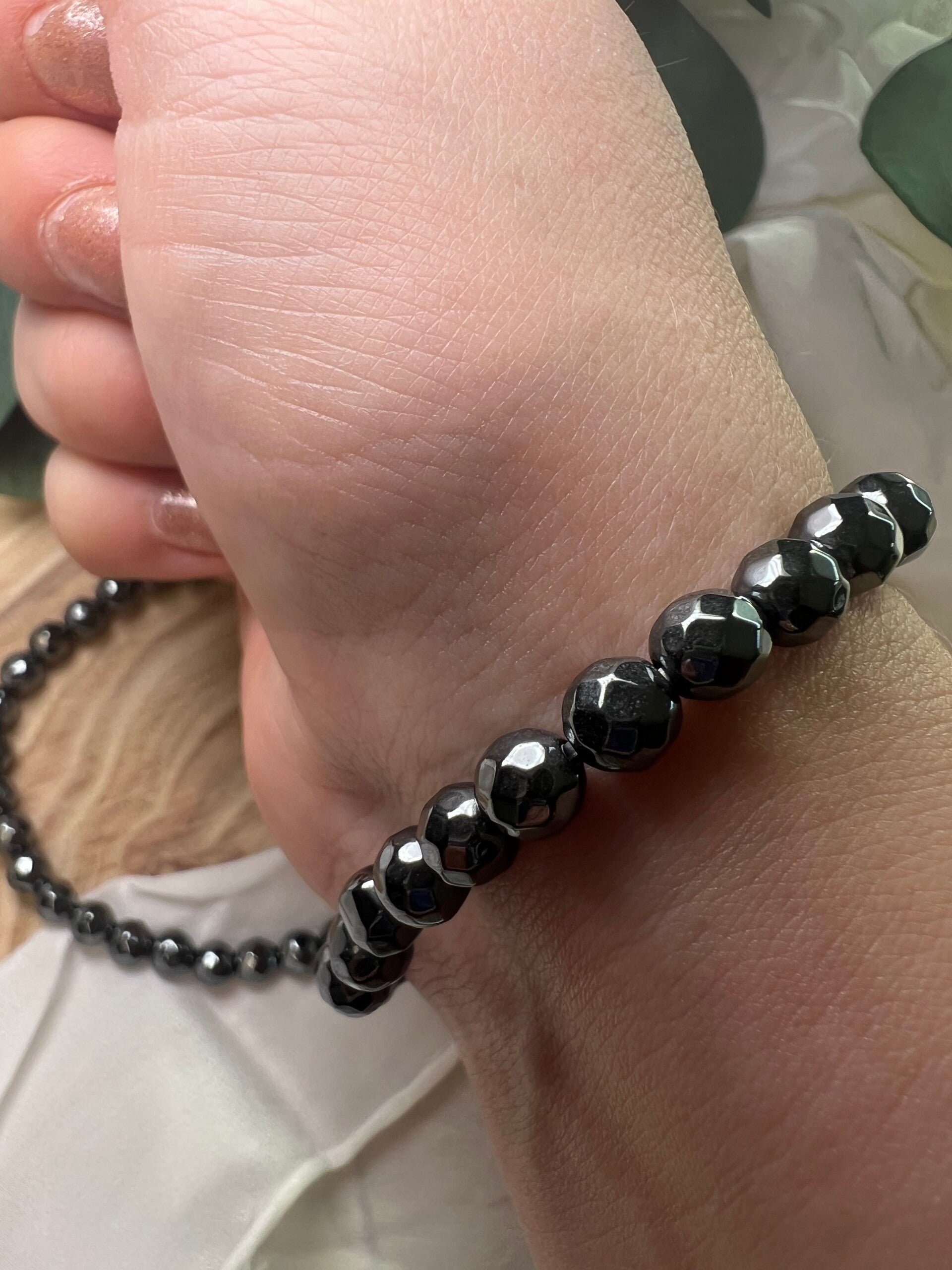 Der Hämatit ist ein kraftvoller Stein der Erdung und Klarheit. Mit seinem metallisch schimmernden Grau steht er für Standfestigkeit, Schutz und innere Balance. Dieses Armband unterstützt dich dabei, dich zu zentrieren und deine Energie bewusst bei dir zu behalten.