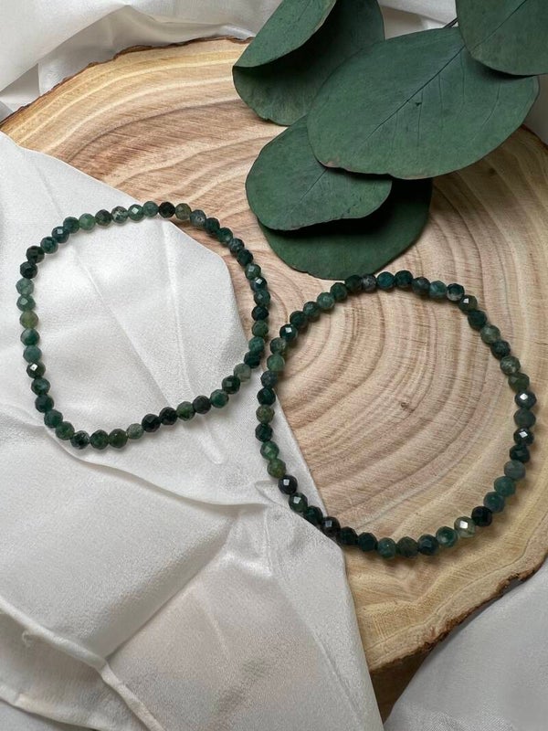 Der facettierte Moosachat (4 mm) fasziniert mit seinen feinen, moosartigen Strukturen und einem zarten Funkeln. Er gilt als Stein der Naturverbundenheit und des sanften Wachstums und begleitet dich dabei, innere Ruhe, Stabilität und Vertrauen in den eigenen Weg zu finden.