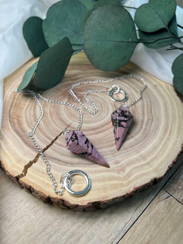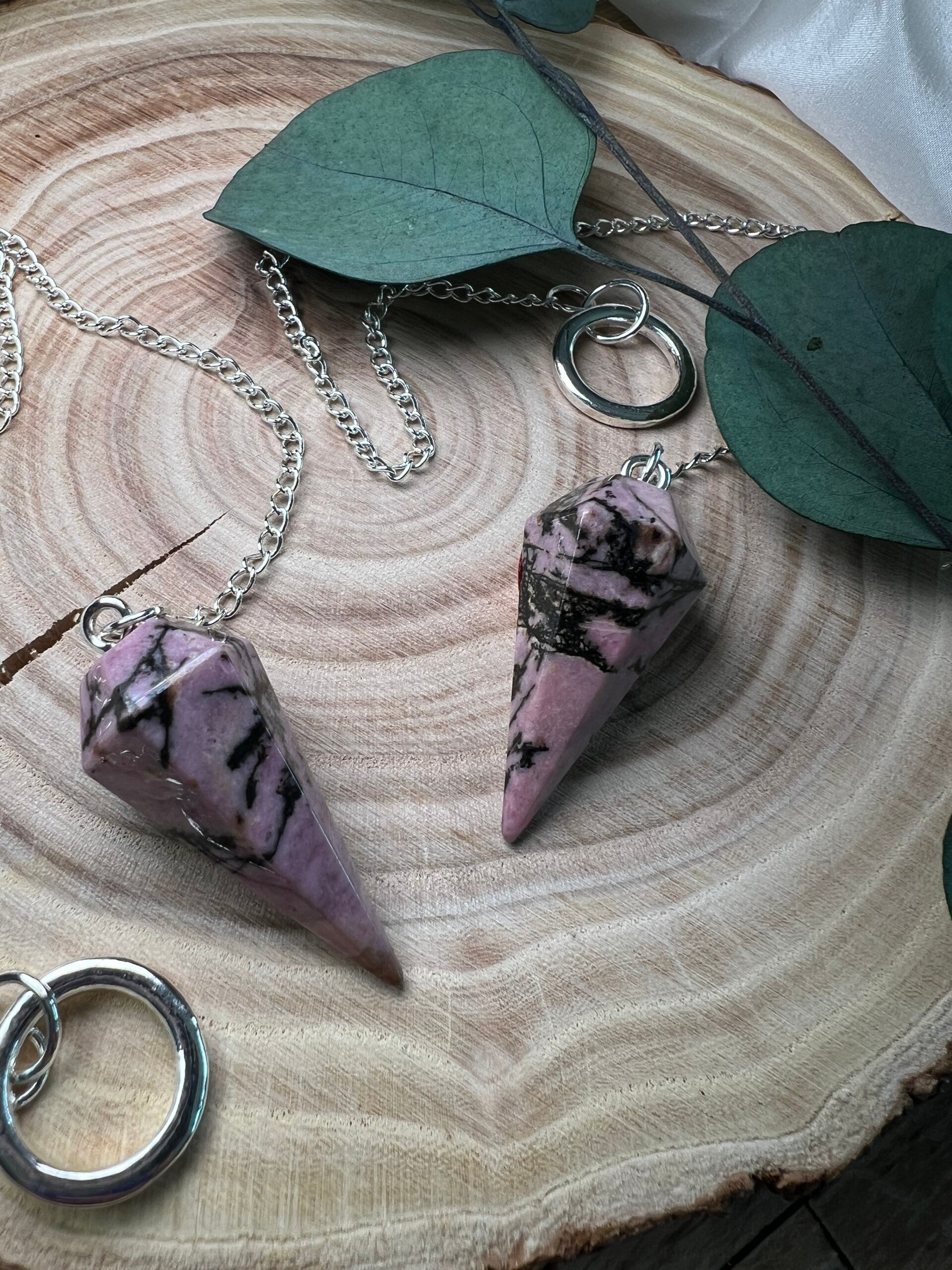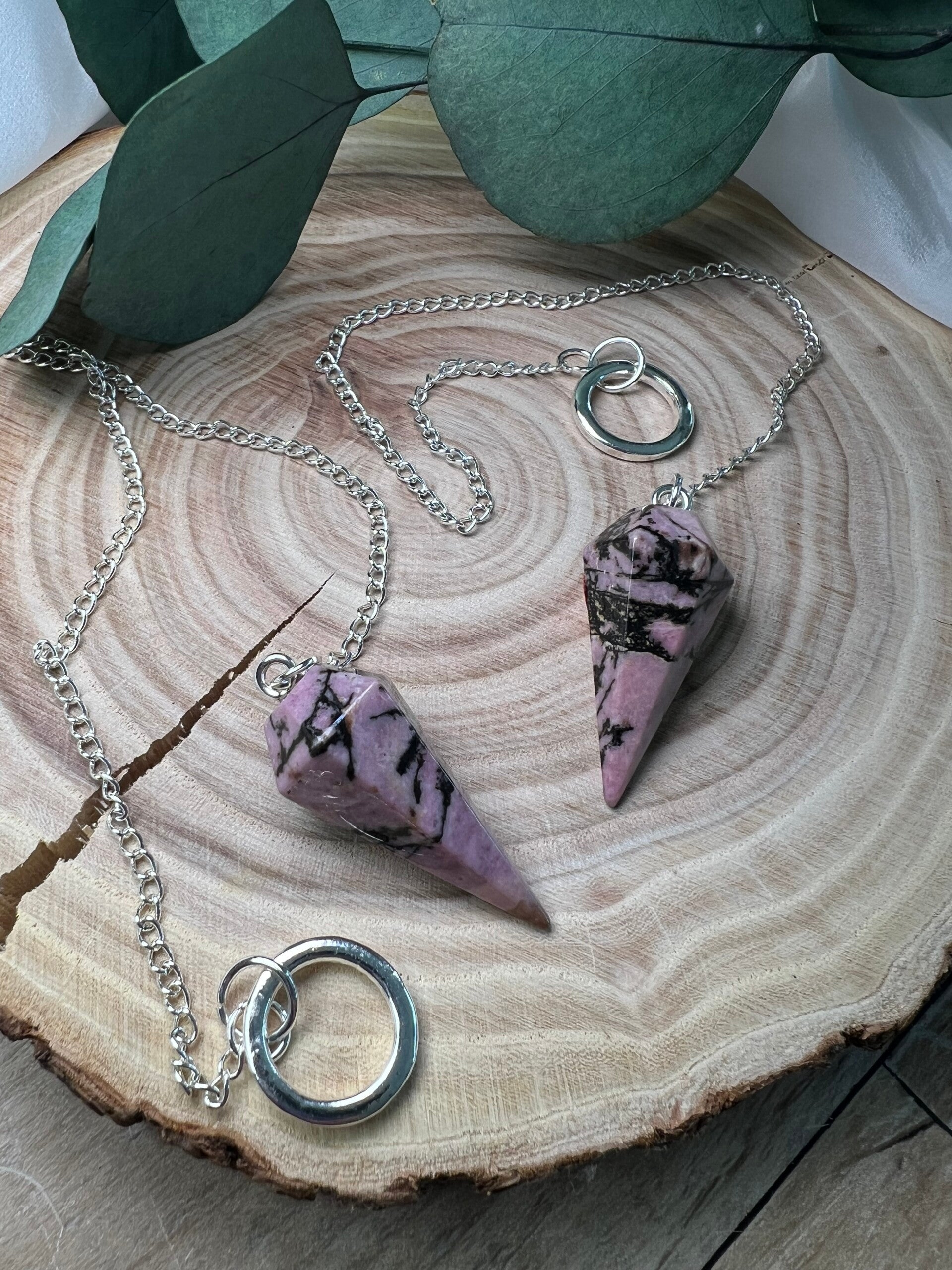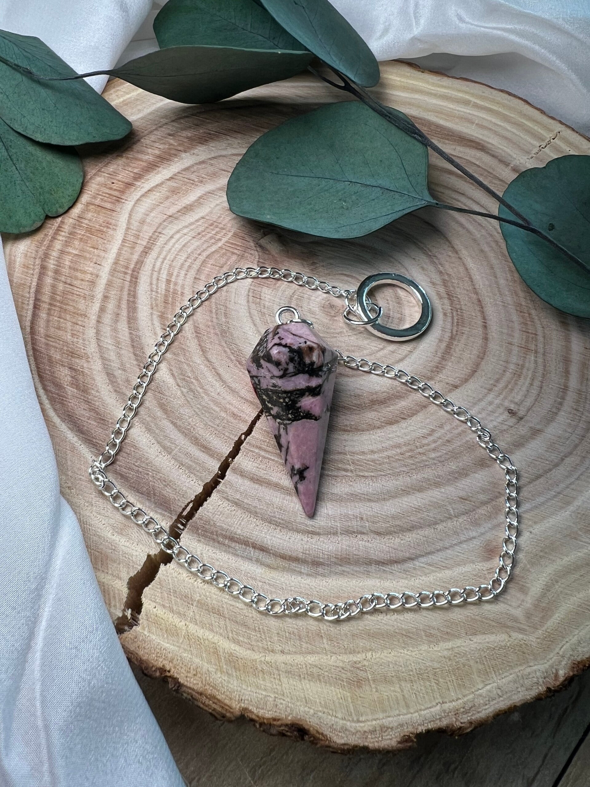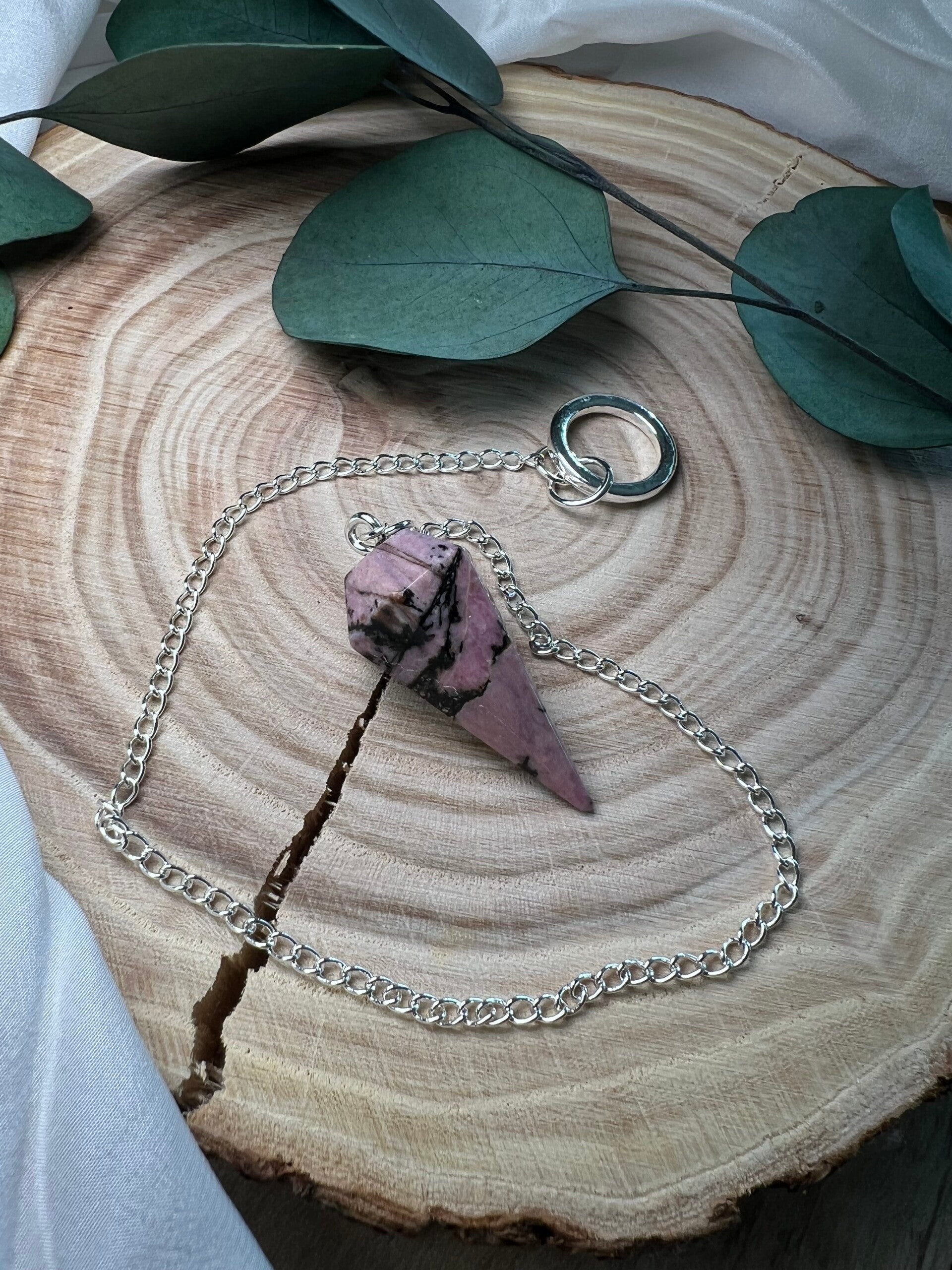 Dieses Rhodonit Pendel verbindet dich mit der Kraft des Herzens.