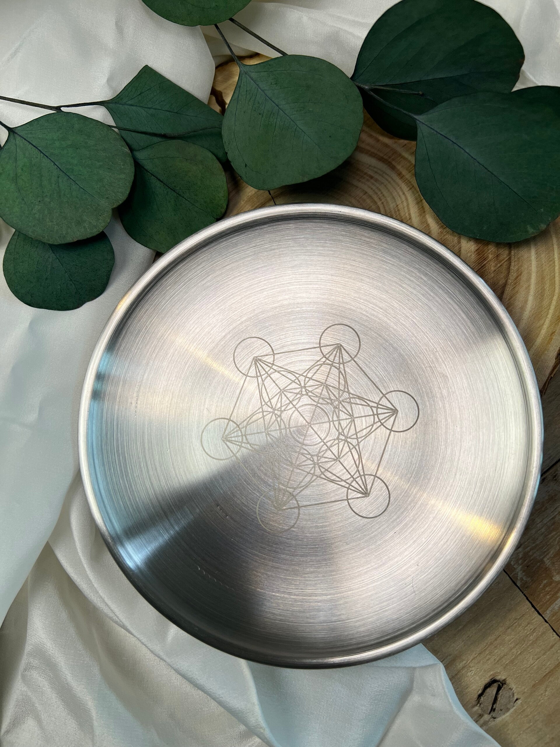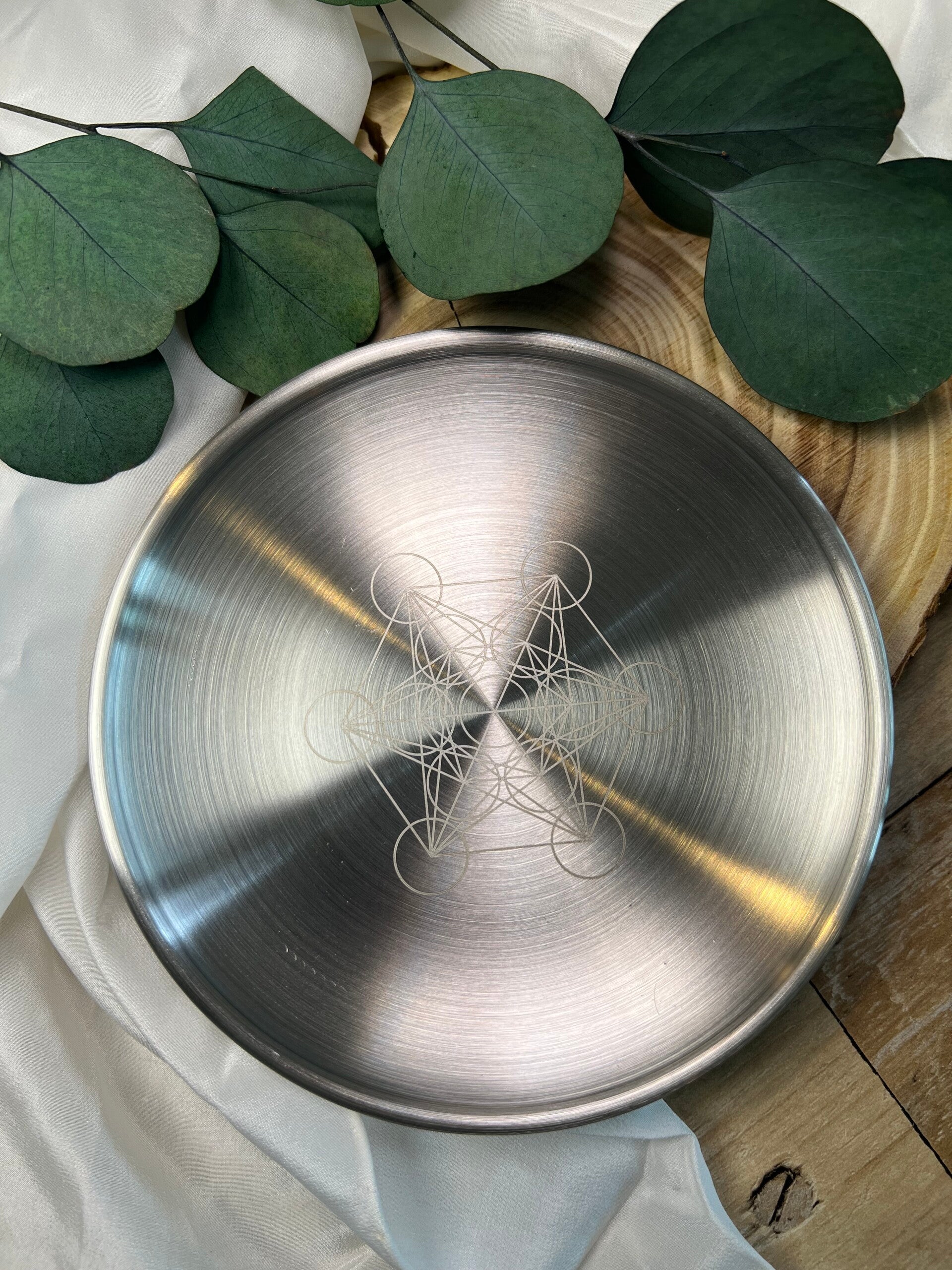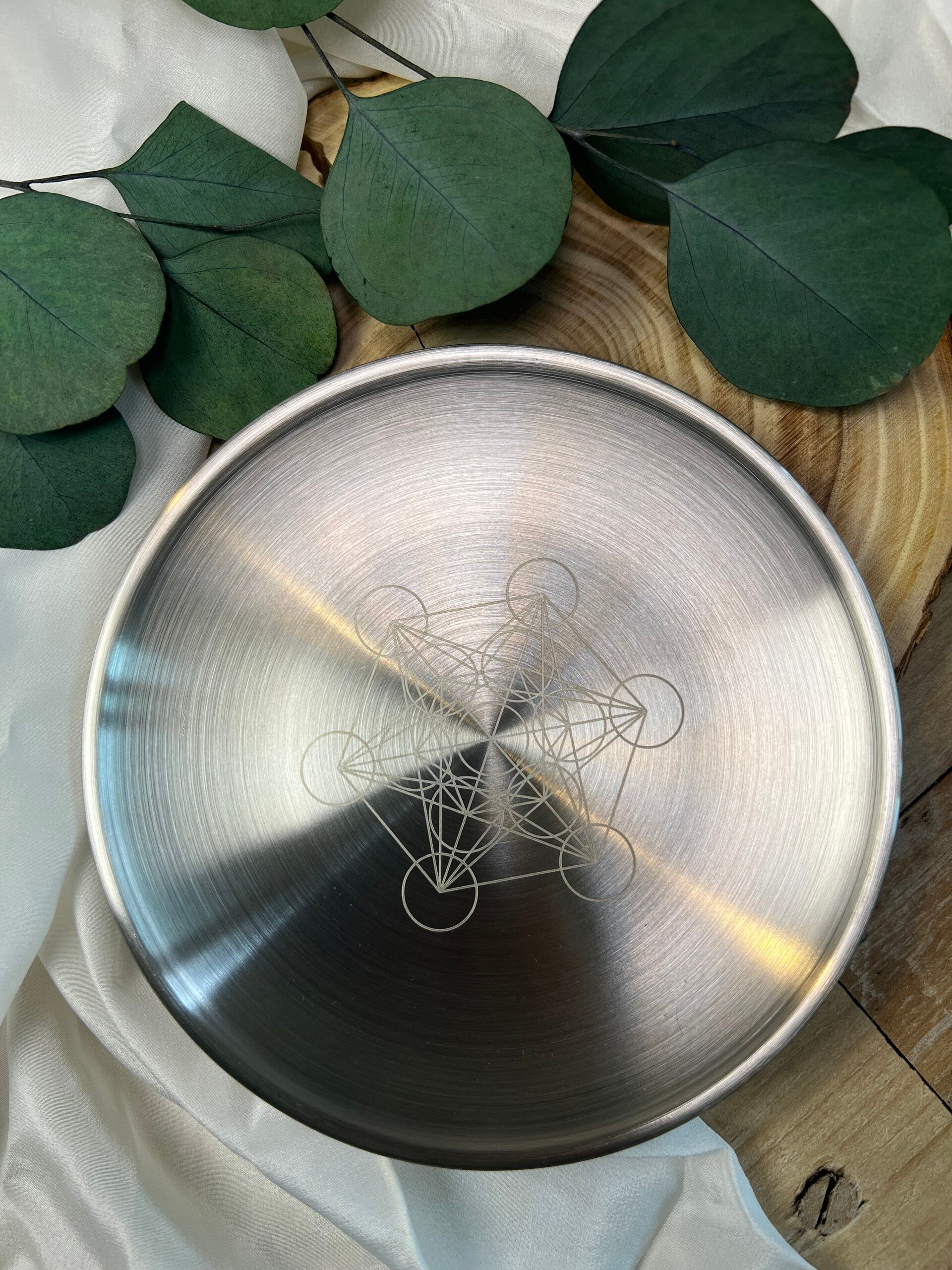 Diese elegante Metallschale vereint Schlichtheit mit Bedeutung. Das eingravierte geometrische Sternsymbol steht für Harmonie, Ordnung und die Verbindung von Himmel und Erde – eine schöne Erinnerung an innere Balance.