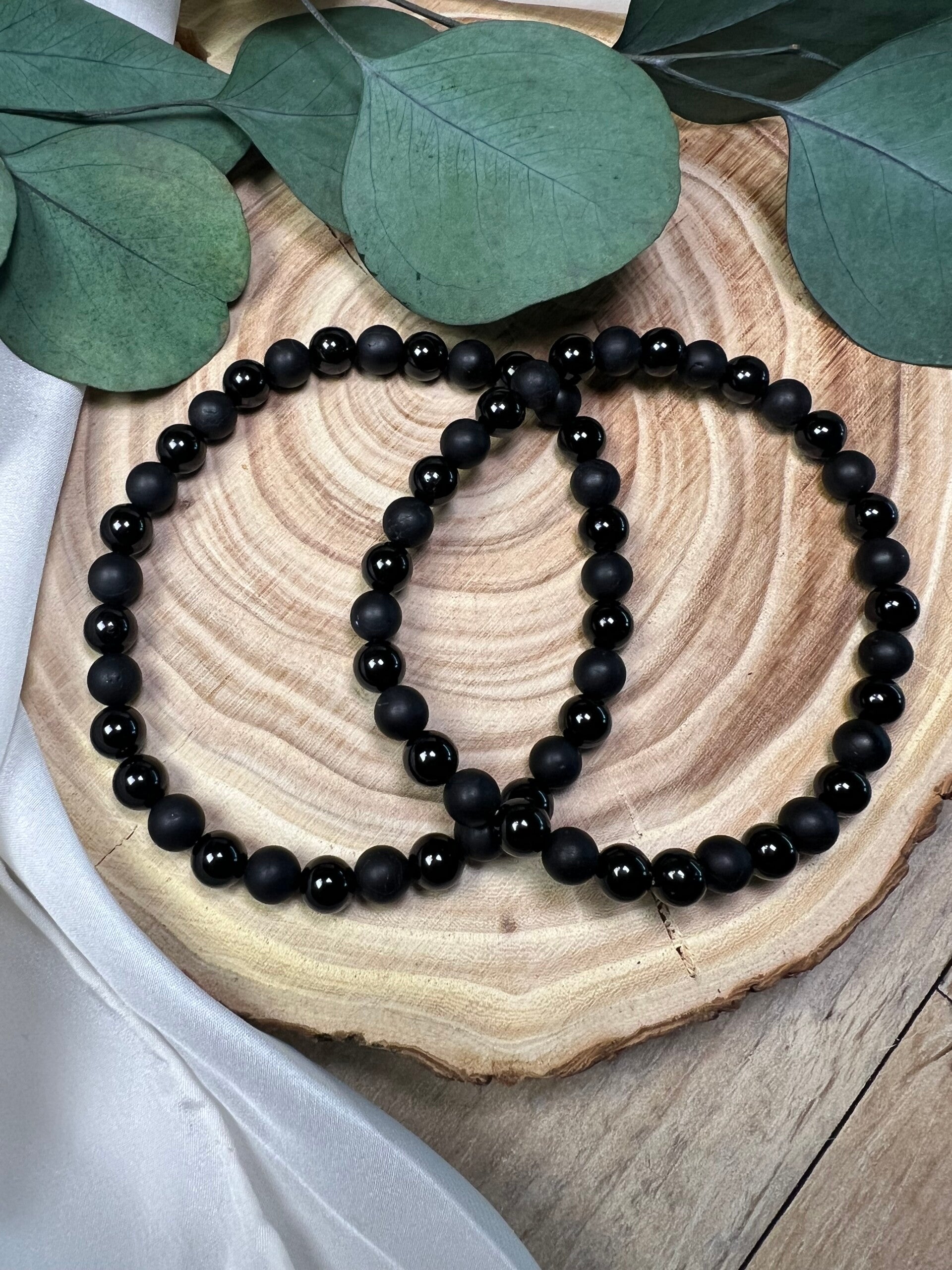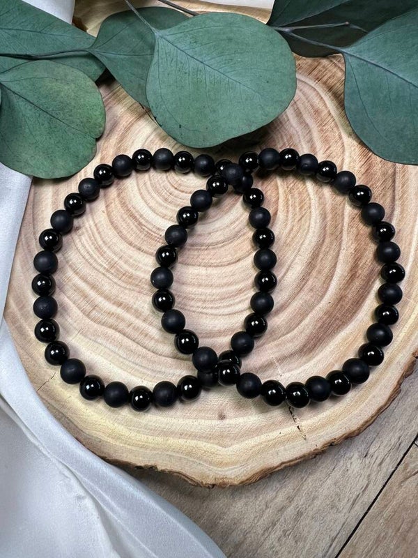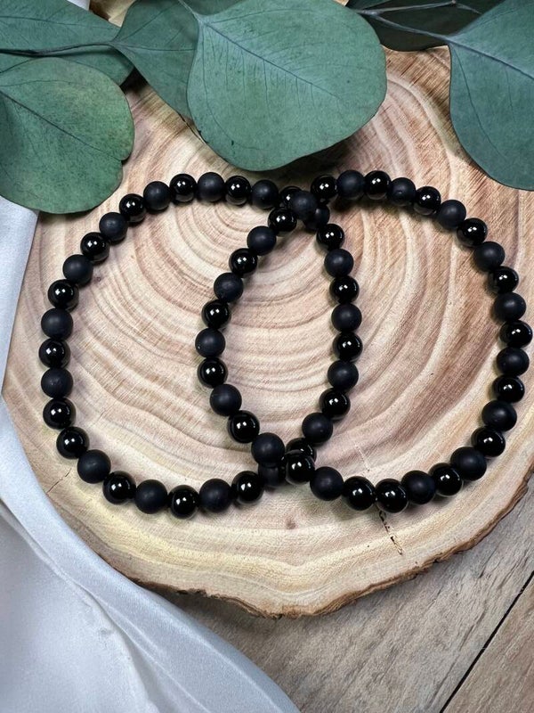 Dieses maskuline Armband kombiniert matt geschliffene und glänzende Schwarzer Turmalin-Perlen in 6 mm Größe – lebendig, stilvoll und elegant zugleich.