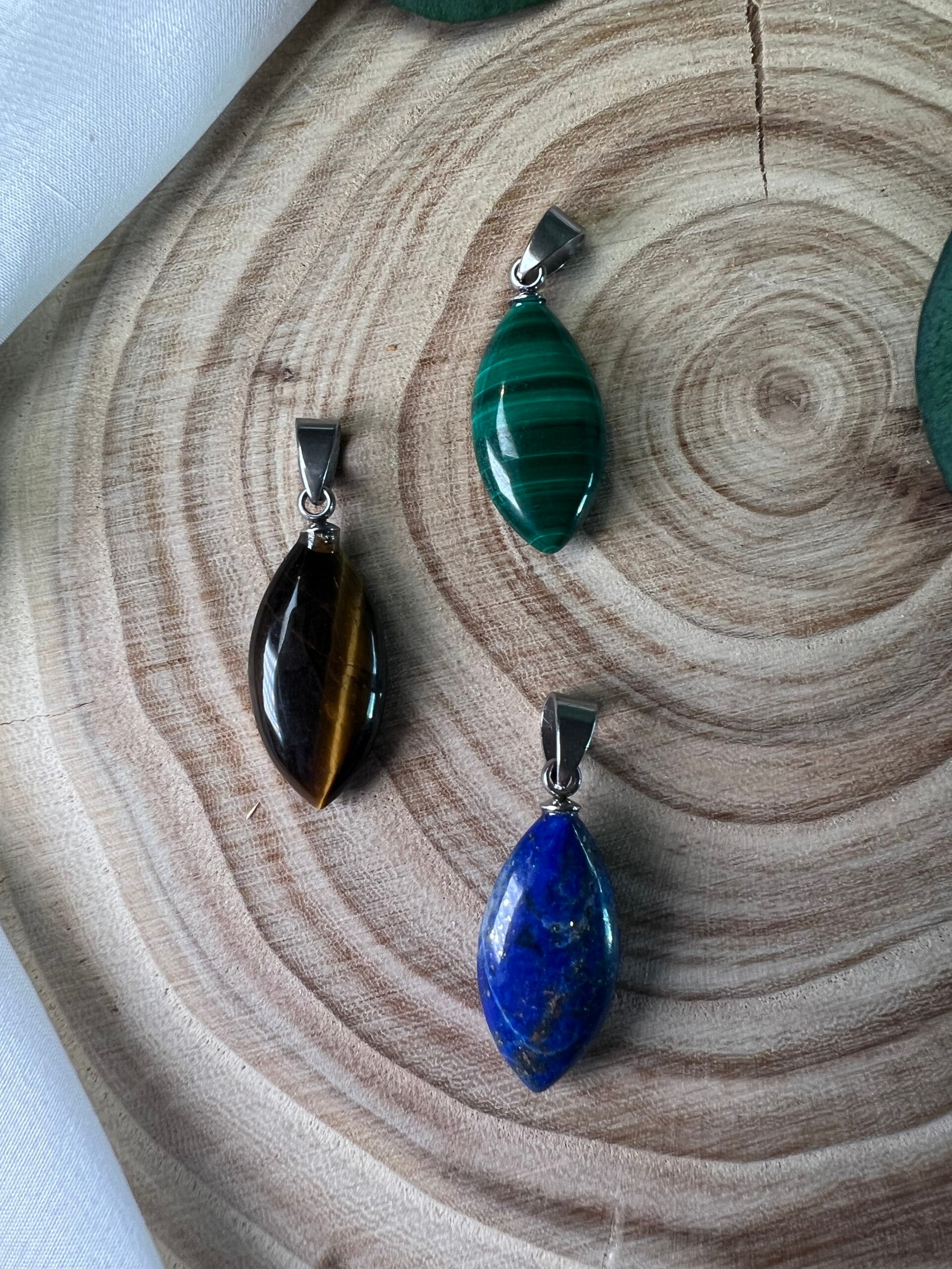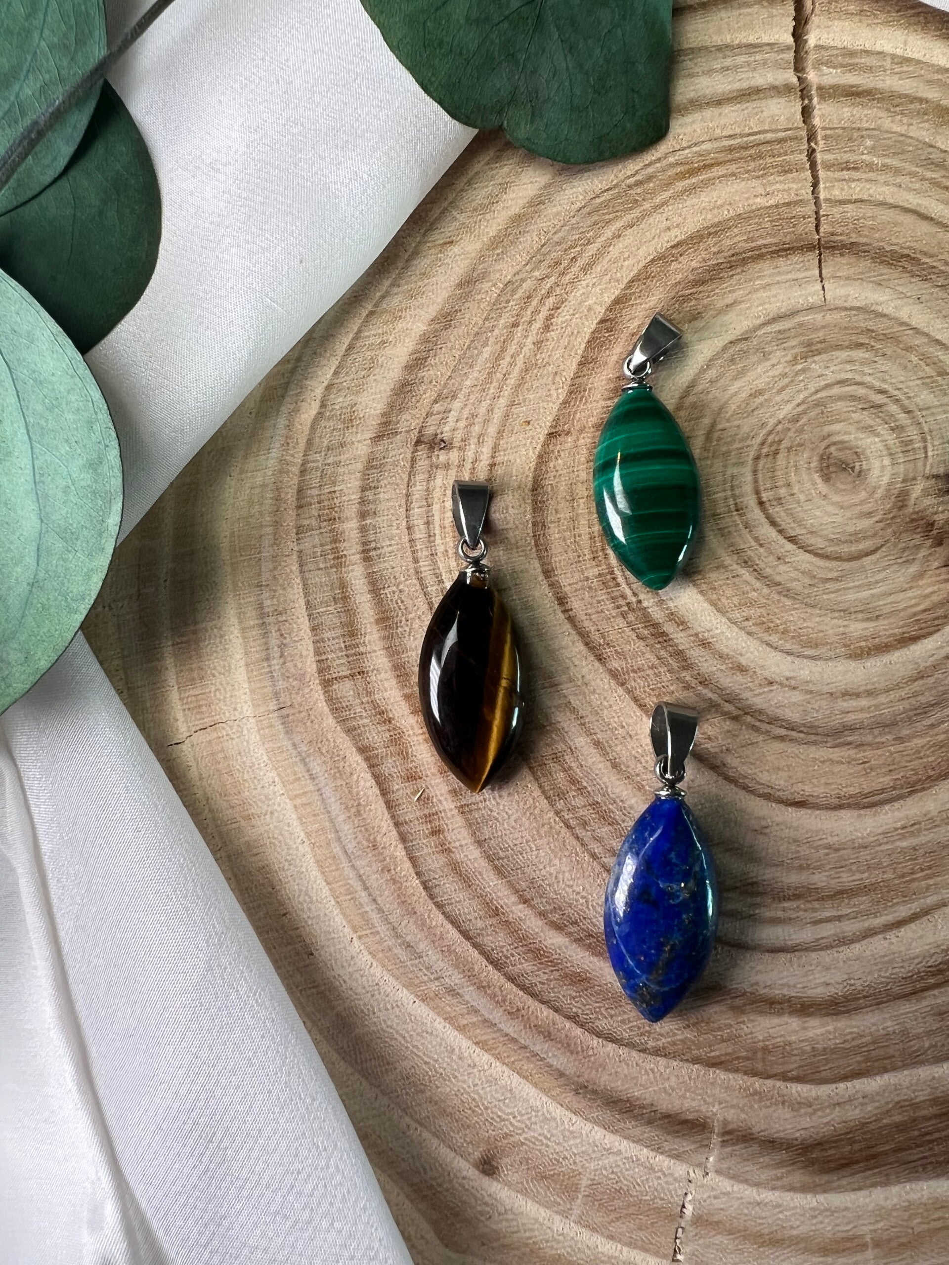 Tropfenanhänger aus Naturstein – Malachit, Tigerauge oder Lapislazuli
