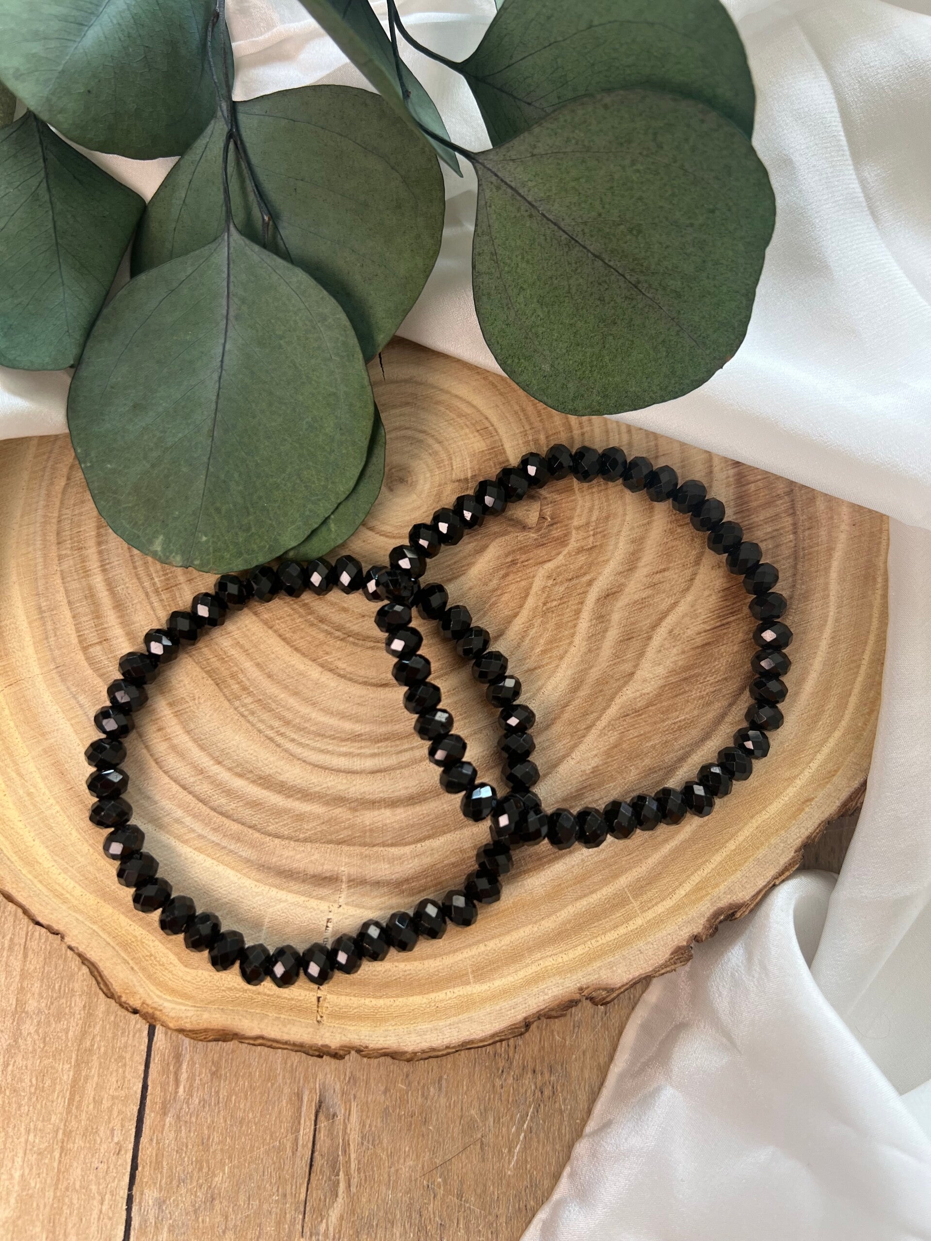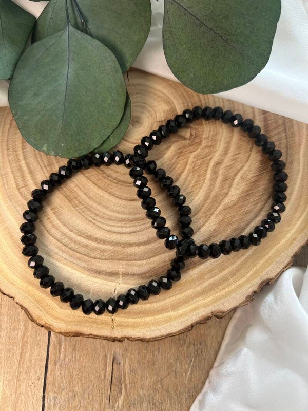 Kraftvolles Armband aus facettiertem Schwarzem Turmalin (6 mm) im Button-Schliff ✨